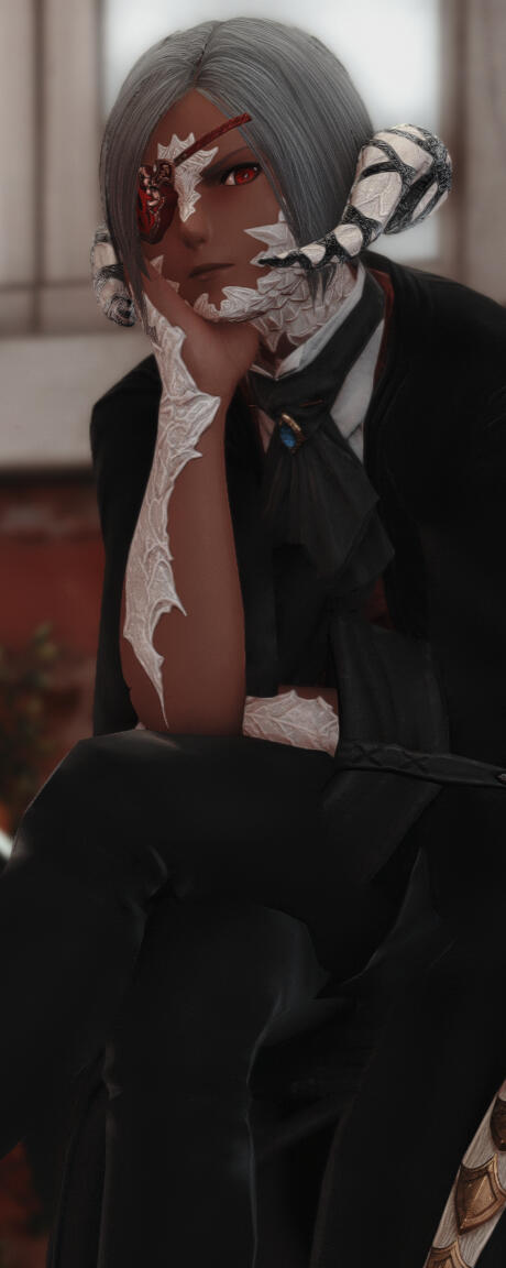 Next anyone would see any trace of Uruha, he would be alone. No mentor at his back, simply himself and his staff, an eyepatch now dominating the right half of his face. Wandering the mountainous region, he would perform many of the same services that his contemporaries would: healing ailments of the body and soul, and selling potent ofuda to fend off violent spirits. However, Uruha is unique among his kind in that he typically does not work without some form of payment, deigning to take what he wants if he was ever refused.Now recently stowed away to the far continent of Eorzea for reasons only he knows, he frequents the more bustling city-state centers, wearing a kind face and offering powerful healing and services at a premium.You could be his next customer.